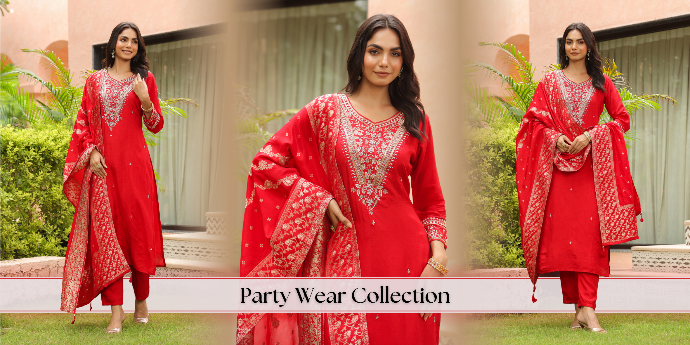 Red Silk Suit with Handwork Neckline & Banarasi Dupatta